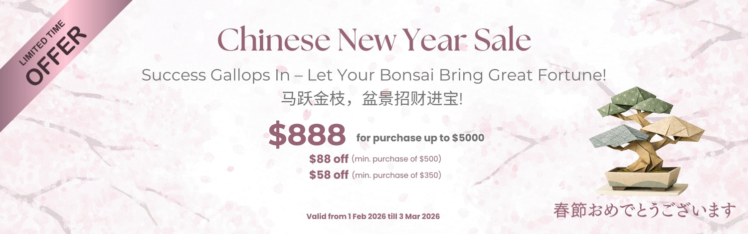 Bonsai makes excellent gift choice. It harmonise a home, nurtures a person's patience and brings good aura for business owners. All our bonsai are gift ready with exquisite pots ready to present. Gifting accessories are available too.